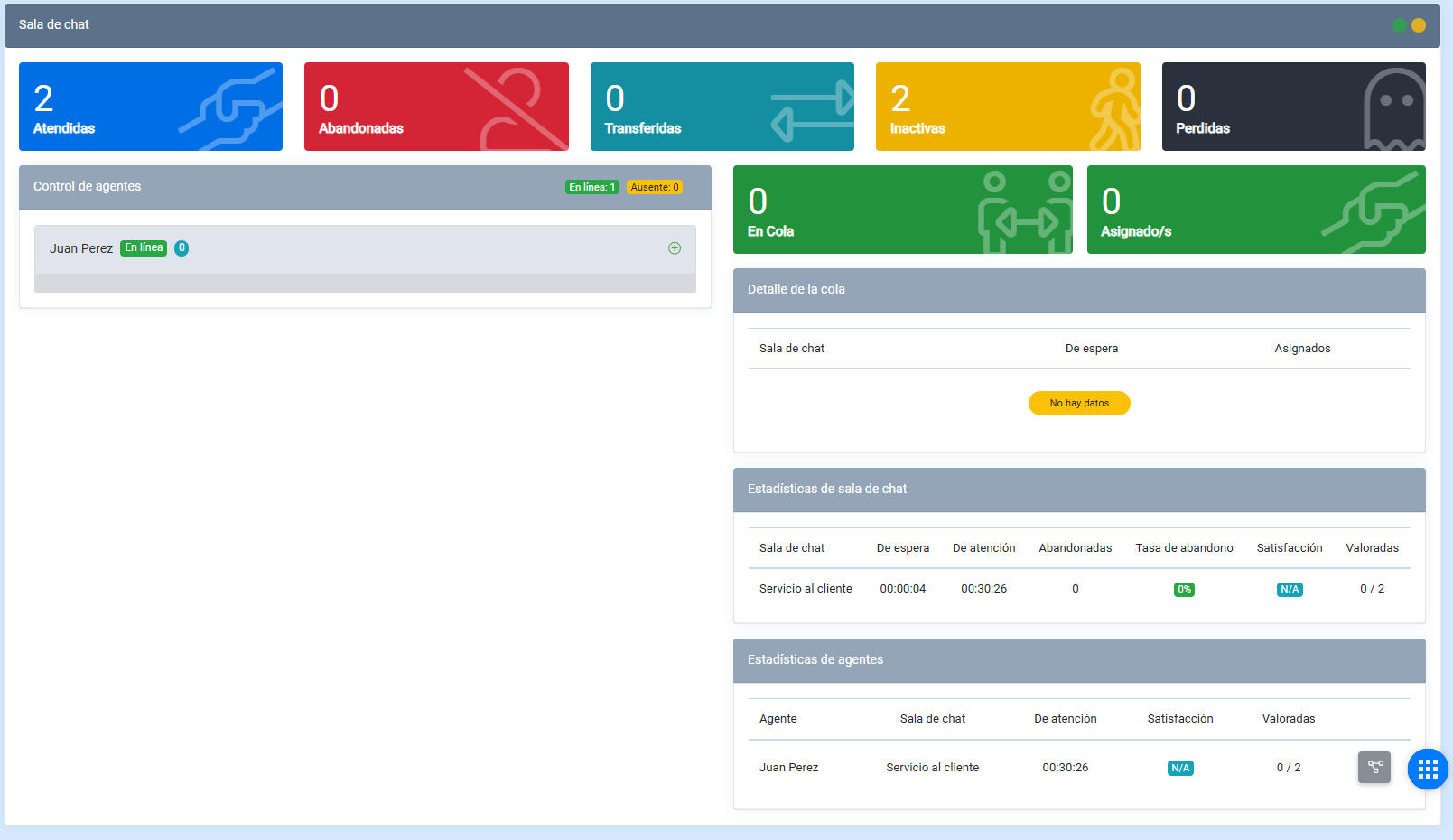 - Sala de chat: En este se muestra la sala de chat en la que esta asignado el agente.