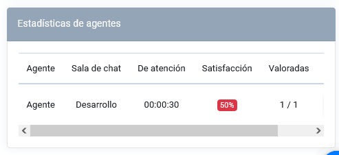- Satisfacción: En este indica el nivel de satisfacción de las salas de chat.