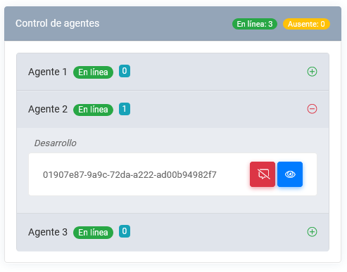 En este espacio el administrador puede monitorear cada uno de los agentes si esta En linea o Ausente.