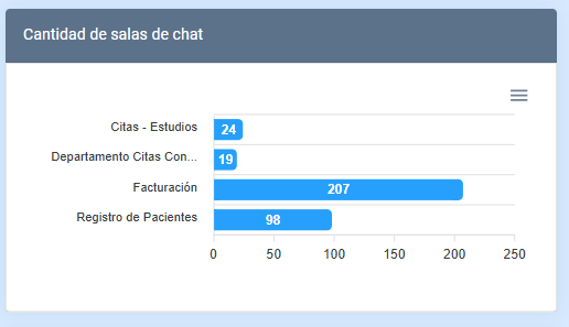 En este módulo se muestra en un gráfico de la cantidad de conversaciones por departamento o salas de chat.