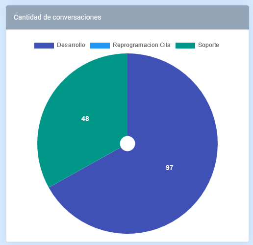 En este modulo se muestra en un gráfico de pastel que muestra la cantidad de conversaciones.