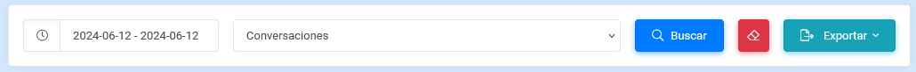 Con este control se puede realizar una búsqueda por fecha para poder ver la información detallada de los reportes enfocados a: conversaciones, opciones, los agentes y salas de chat.
