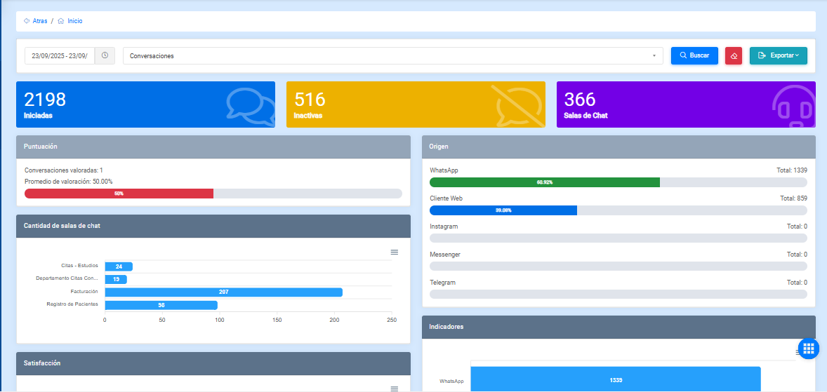 Este módulo muestra el nivel de satisfacción de cada una de las salas de chat.