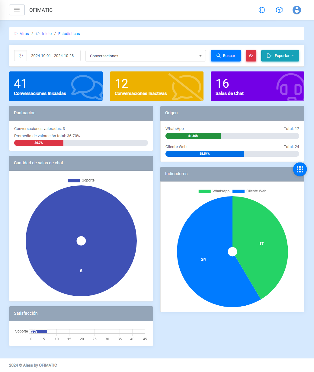Este modulo muestra el nivel de satisfacción de cada una de las salas de chat.