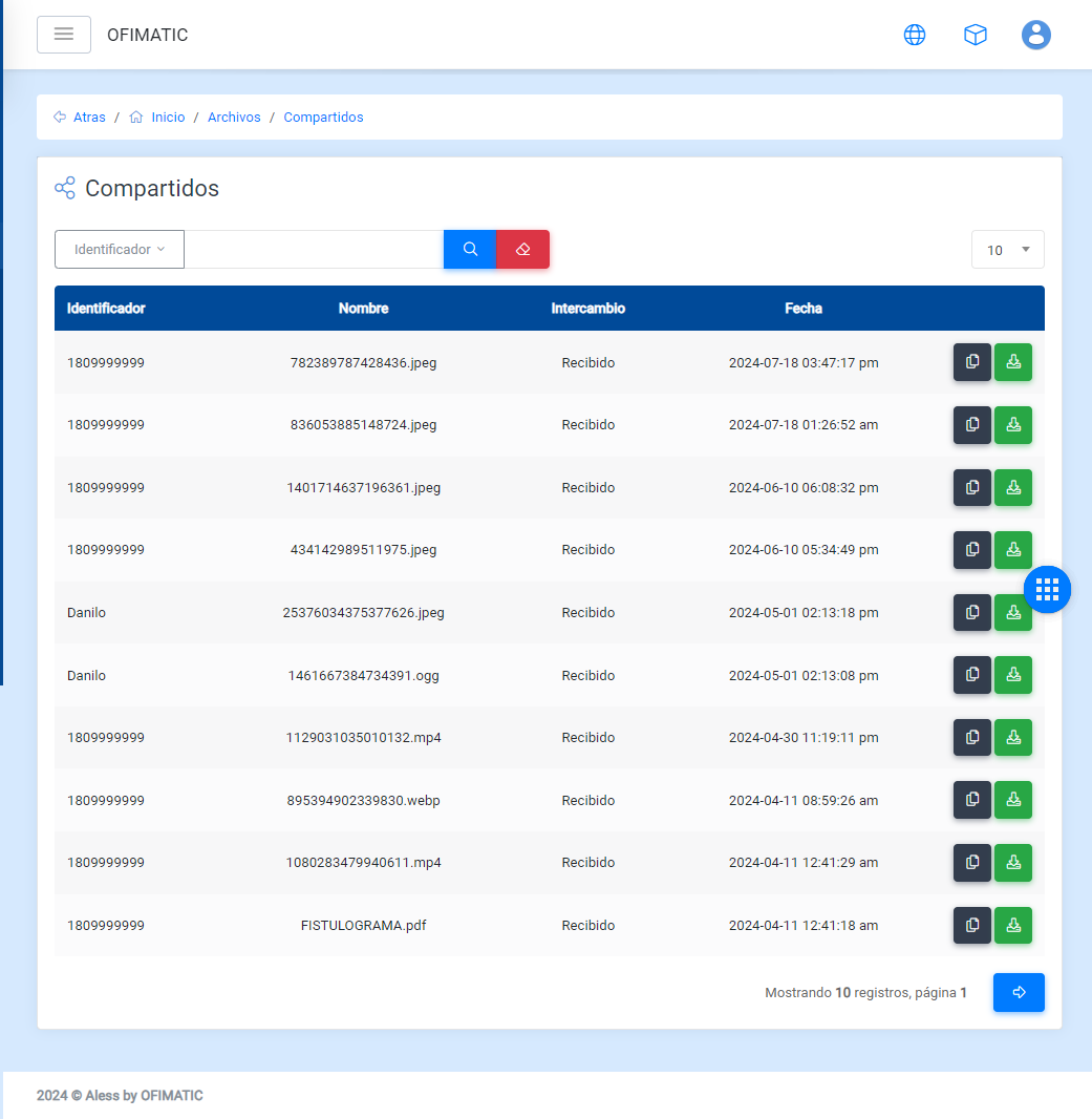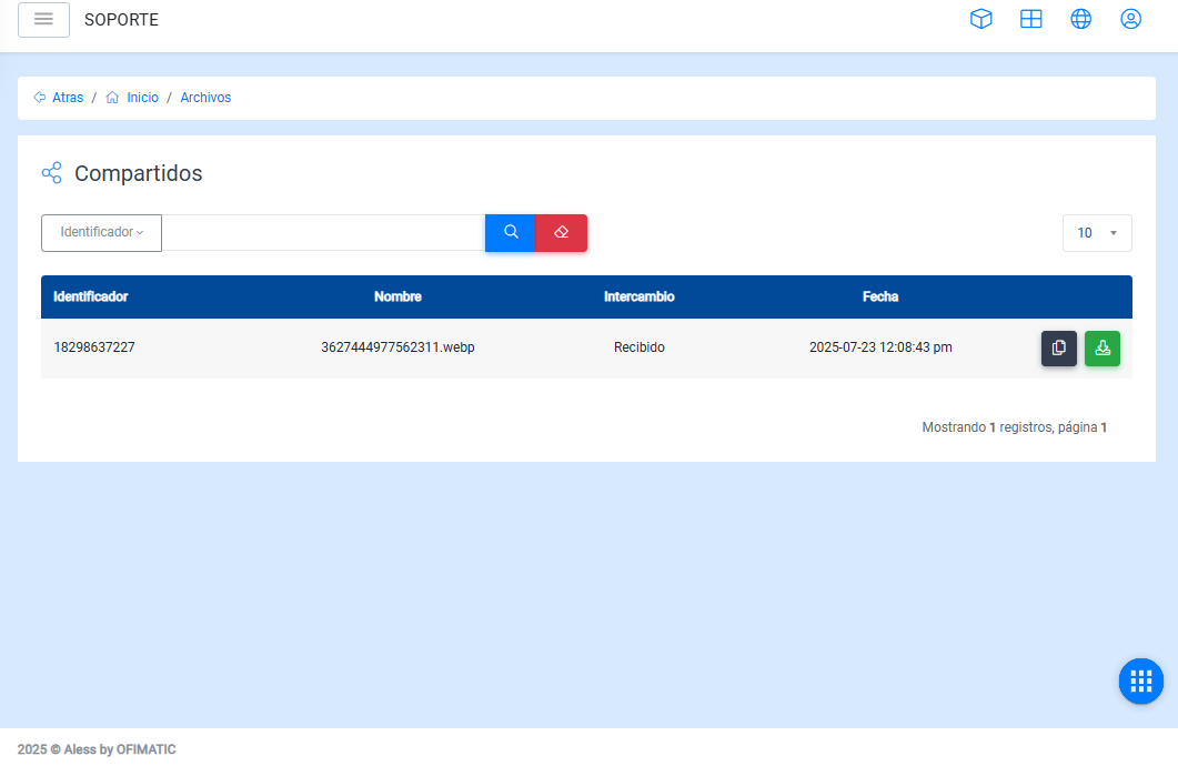 - Opciones: Descargar un archivo del histórico.