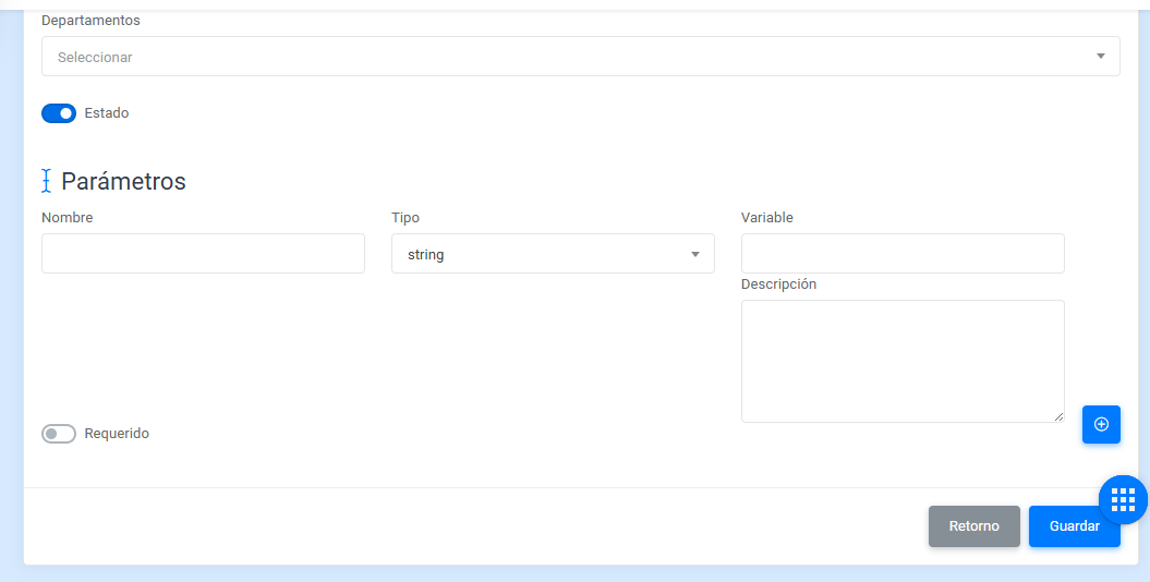 - Tipo: Por defecto, esta en string, define el tipo de variable.