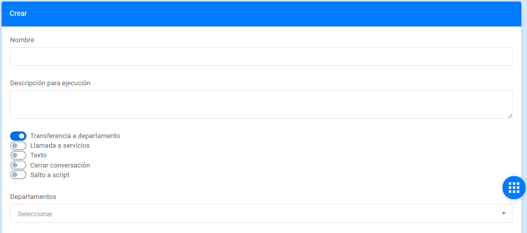 - Transferencia a departamento: Permite enviar la conversación a un departamento.