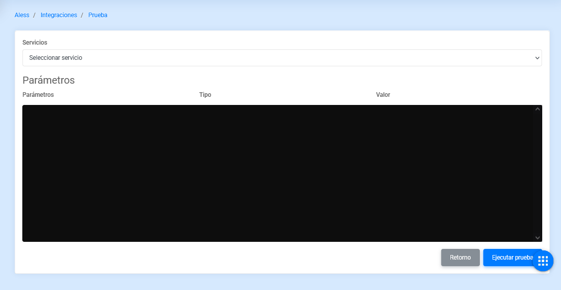 Para probar la integración debe presionar el botón Ejecutar prueba ubicado en la esquina inferior derecha.