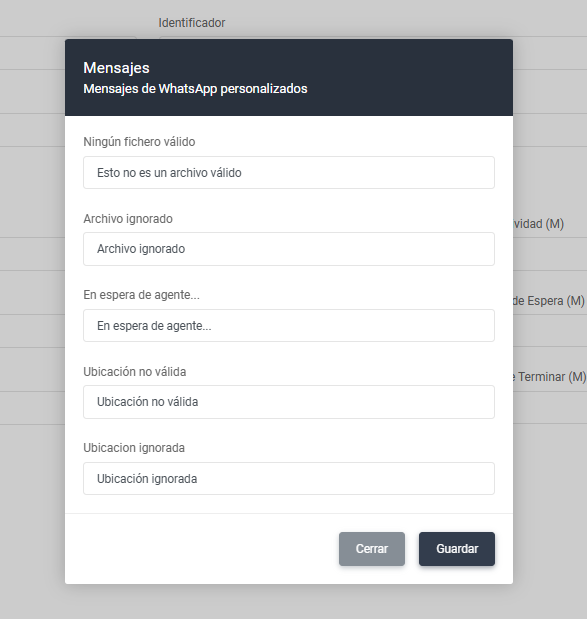 - Tiempo de inactividad: En este campo se coloca el tiempo de inactividad de una conversación en minutos.