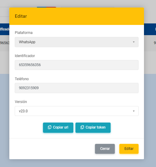 En esta opción se pueden editar los bots de WhatsApp que se tengan configurados, dentro de este formulario se encuentra lo siguiente: