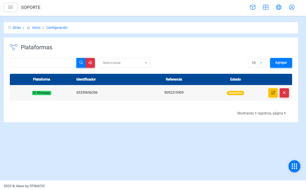 En este apartado, se puede visualizar todos los números telefónicos asociados a un bot, en la tabla se muestran los siguientes campos: